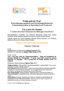 Ganztägige Veranstaltung zum Thema »Wohin geht der Weg? Entwicklungsperspektiven und Fördermöglichkeiten der Geisteswissenschaften in Deutschland und Frankreich« mit Vertretern aus Wissenschaft und Wissenschaftsförderung aus Frankreich und Deutschland, organisiert vom DHIP (Gudrun Gersmann) in Zusammenarbeit mit der Fondation Maison des sciences de l'homme (Hinnerk Bruhns), und Vorstellung der Internetprojekte »perspectivia.net« und »Trivium«
