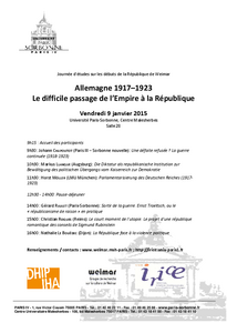 Journée d’étude préparatoire à l’agrégation d’allemand organisée par l’université Paris-Sorbonne en coopération avec le groupe de recherche sur la culture de Weimar, l’UMR Irice ainsi que l’IHA.
