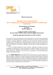 Vorstellung des Buches »Raymond Aron und Deutschland. Die Verteidigung der Freiheit und das Problem des Totalitarismus« von Matthias Oppermann durch den Autor, unter Leitung von Pierre Manent (Directeur d'études an der EHESS, Centre de recherches politiques Raymond Aron)