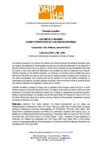 Conférence de Christoph Cornelißen, université Goethe de Francfort, dans le cadre du cycle de conférences »Les jeudis de l’actualité historiographique«