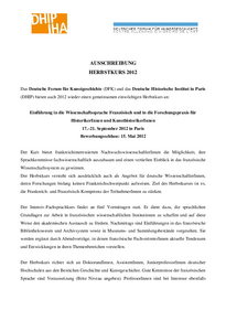 Herbstkurs für HistorikerInnen und KunsthistorikerInnen, veranstaltet vom DHIP (S. Martens) und dem Deutschen Forum für Kunstgeschichte (G. Janzing)