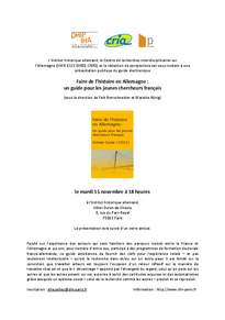 Vortrag von Falk Bretschneider, Patrick Farges, Peggy Rolland, Annette Schläfer und Mareike König anlässlich der Publikation on-line auf perspectivia.net des Studienführers »Faire de l’histoire en Allemagne: un guide pour les jeunes chercheurs français«
