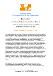 Vortrag von Zaur Gasimov (Leibniz-Institut für Europäische Geschichte, Mainz), »Contre les Soviets!« Le mouvement prométhéen entre Paris et Varsovie: 1918-1939