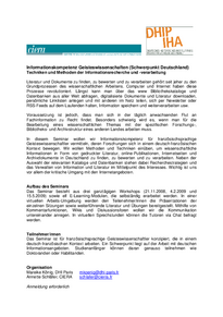 Teil 1 des Seminars in französischer Sprache, organisiert vom DHIP (Mareike König) und dem CIERA (Annette Schläfer)