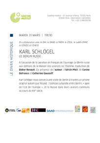 Conférence de Karl Schlögel, Le Berlin russe, suivie d’une table ronde avec Corine Defrance, Catherine Goussef et Ulrich Pfeil, organisée par le Goethe-Institut Paris, l’IHA, l’université de Lorraine ainsi que le LabEx EHNE en coopératiion avec la FMSH, le DAAD et le Centre d’études des mondes russe, caucasien et centre-européen (EHESS).