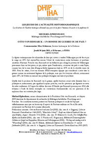 Vortrag von Michael Epkenhans (Militärgeschichtliches Forschungsamt), Otto von Bismarck – un homme de guerre ou de paix ?