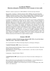 Seminar, organisiert vom CRIA (Patrice Veit, Michael Werner) und dem DHIP (Gudrun Gersmann), in Zusammenarbeit mit der Mission historique française en Allemagne