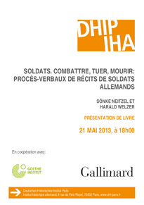 Présentation de livre Sönke Neitzel, Harald Welzer, Soldats. Combattre, tuer, mourir: procès-verbaux de récits de soldats allemands, Paris 2013.