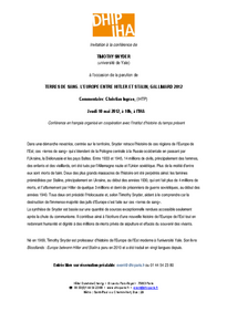 Vortrag des Autors Timothy Snyder (Yale University) organisiert vom DHIP (A. Weinrich, S. Prauser) in der Reihe »La guerre au XXe siècle« unter Mitwirkung des IHTP
