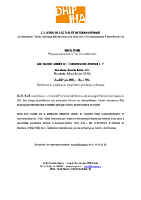 Conférence de Gisela Bock, Freie Universität Berlin, dans le cadre du colloque »Pour une histoire genrée de l’Europe« et du cycle de conférences »Les jeudis de l’actualité historiographique«.