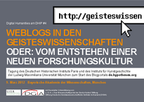 Tagung des Deutschen Historischen Instituts Paris und des Instituts für Kunstgeschichte der Ludwig-Maximilians-Universität München zum Start des Blogportals de.hypotheses.org. Mit finanzieller Unterstützung von L.I.S.A. – Das Wissenschaftsportal der Gerda Henkel Stiftung und der Stiftung Deutsche Geisteswissenschaftliche Institute im Ausland (DGIA).
