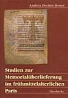 Andrea Decker-Heuer, Studien zur Memorialüberlieferung im frühmittelalterlichen Paris, Sigmaringen (Thorbecke) 1998.
